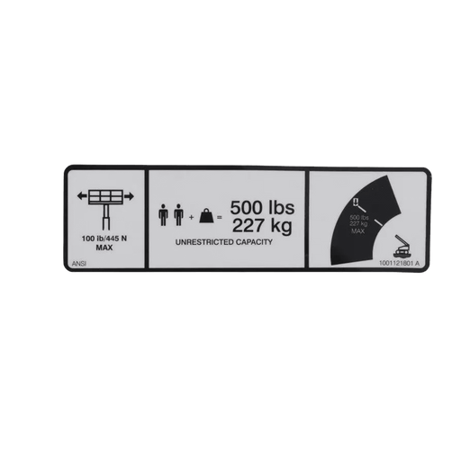 JLG Decal, Max Cap. 500Lbs/227Kg 1001121801